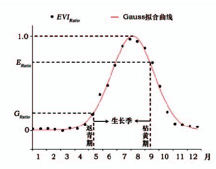 Figure 2 The threshold method图2 阈值法植被物候模型 |