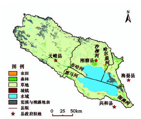 Figure 1 Qinghai Lake watershed land cover in 2012图1 2012年青海湖流域土地覆被 |