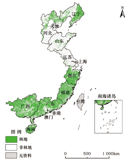 Figure 3 The spatial distribution of forest of China 's coastal areas in 2014 |