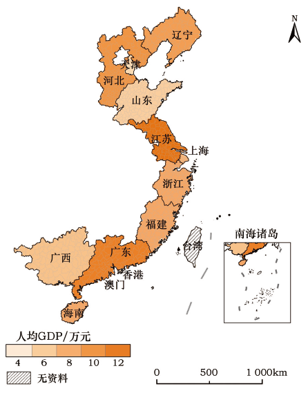 Figure 9 The per GDP of China 's coastal areas in 2014图9 2014年中国沿海地区人均GDP统计 |