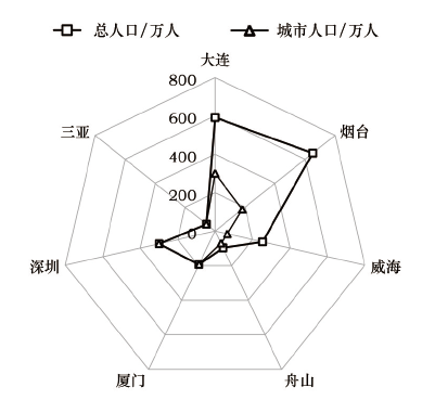 Figure 10 The demographics of China 's key marine tourism city in 2014图10 2014年中国重点海洋旅游城市人口统计 |