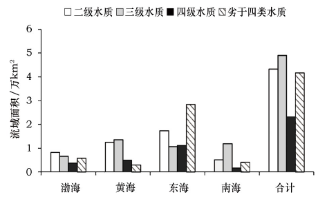 Figure 2 The sea water quality standard statistical results of China in 2014图2 2014年中国管辖海域水质统计结果 |