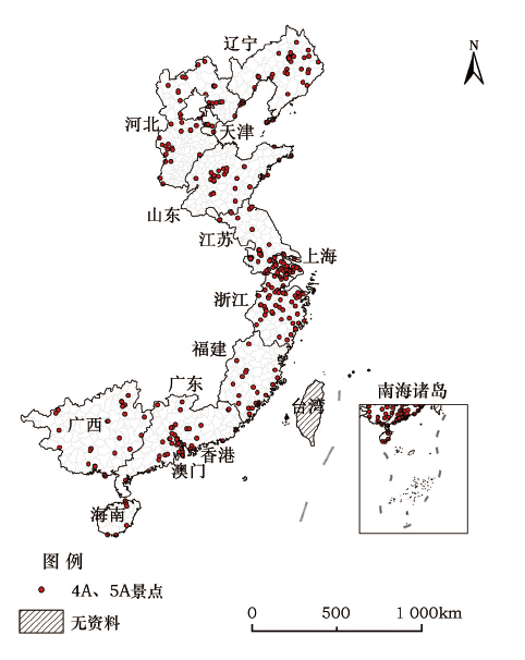Figure 5 The spatial distribution of 4A and 5A scenic spot of China 's coastal areas in 2014 |