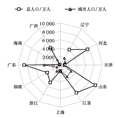 Figure 8 The demographics of China 's coastal areas in 2014图8 2014年中国沿海地区人口统计 |