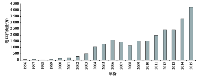 Figure 1 The volume of oil that china imported from Russia from 1996 to 2015图1 1996—2015年中国从俄罗斯进口的石油量 |