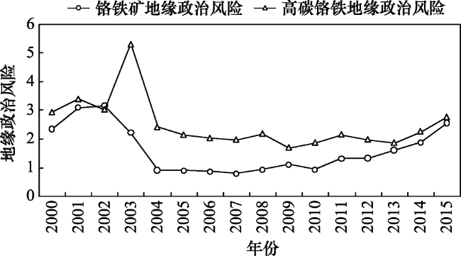 | 地缘政治风险(铬铁矿) | <1.00 | 1.00(含)~2.00(含) | >2.00 |