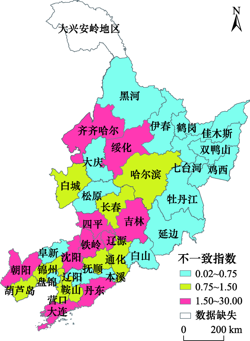 | 齐齐哈尔 | 0.033(34) | 0.308(24) | 0.198(25) | 0.239(15) | 0.194(26) |