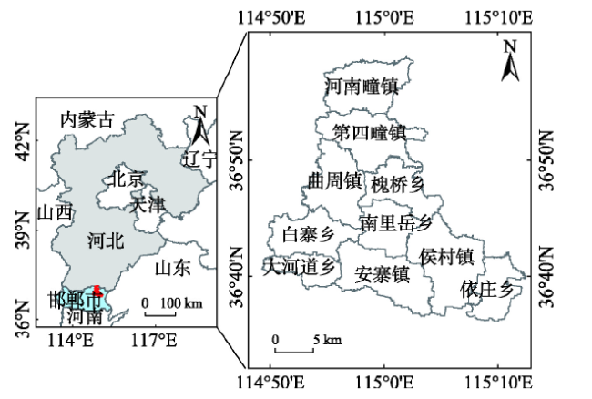 Figure 1 Location of Quzhou County in Hebei Province, China图1 中国河北省曲周县区位图 |