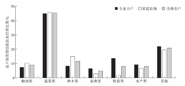 表3 家庭农场和专业大户经营设施农业情况的区域性差异Figure 3 Regional differences in facility agriculture of family farms and specialized households |