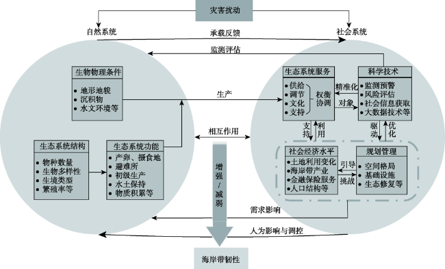 | 灾害学 | 海岸带系统抵御扰动、在扰动发生时快速吸收与恢复的能力,研究侧重于特定灾害事件对海岸带社会生态系统的情景模拟与预测 | Song等[30] |
