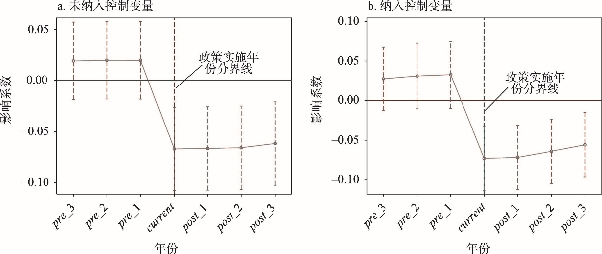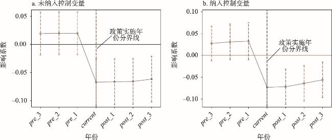 表2 平行趋势分析结果Table 2 Results of parallel trend analysis |