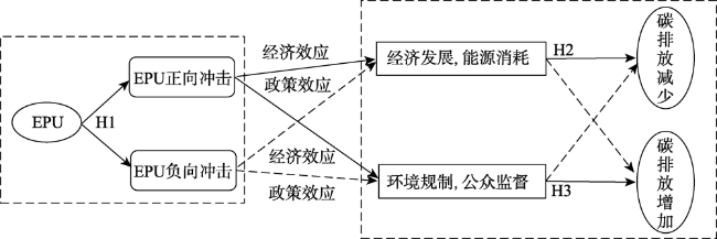 在全球经济快速转型背景下,经济政策不确定性(EPU)的影响已渗入到生产生活的各个领域,正确认识经济政策不确定性带来的环境风险对“双碳目标”实现至关重要。本文基于非对称传导效应视角,采用2003—2017年中国30个省份面板数据,实证检验EPU在长短期对碳排放的对称与非对称影响,并基于经济发展水平展开异质性分析,构建中介效应模型分析EPU上升、下降对碳排放影响的作用机制。研究表明:①EPU对碳排放短期存在非对称影响,长期存在对称影响。在短期,EPU上升显著影响碳排放,而EPU下降对碳排放影响不明显。在长期,两者呈负相关的线性关系,EPU下降促进碳排放。②EPU对碳排放的影响因经济发展水平不同而具有明显区域异质性。在短期,EPU变化对东部地区作用不显著,对中、西部地区作用显著,并表现出非对称影响;在长期,东部地区仅有EPU下降会增加碳排放,中、西部地区EPU与碳排放呈现负相关的线性关系。③碳排放在不同区域受到EPU冲击后的调整速度不同,东部地区的自我调节能力高于中、西部地区,能更迅速地调整并稳定碳排放水平。④EPU对碳排放的影响主要通过经济效应表现,EPU上升通过抑制经济增长活力导致碳排放降低,EPU下降通过加快经济增长速度导致碳排放增加。未来,政府应审慎调整经济政策,健全和完善市场信息披露体系并充分发挥地区比较优势助推新兴产业发展。