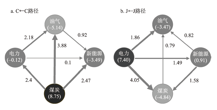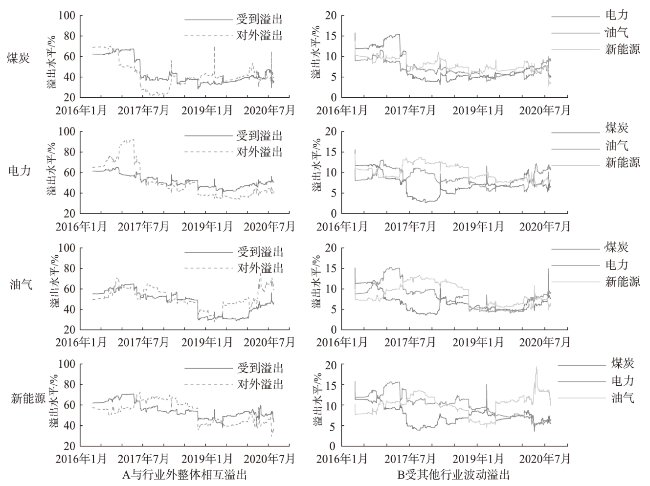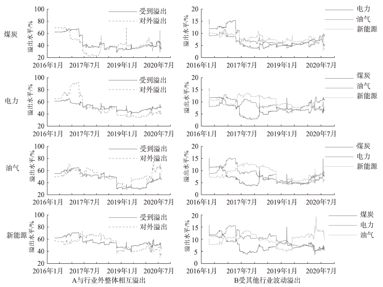 表5 各能源子行业两类波动风险对内对外溢出情况Table 5 Spillovers from and to outside industries |