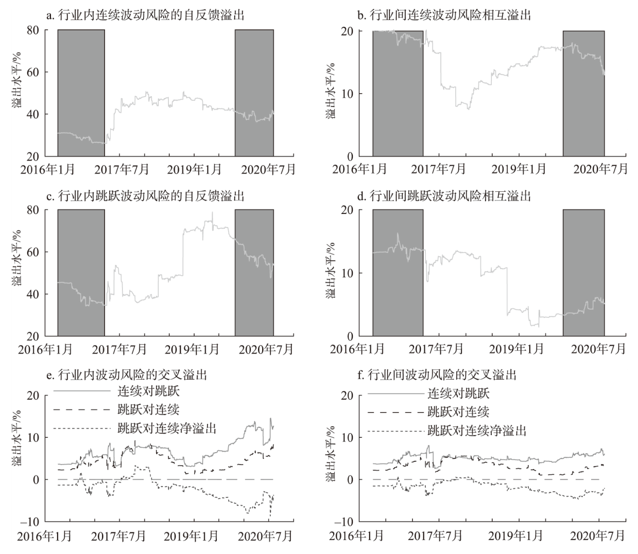 注:净输出是扣除风险流入后的风险溢出,旨在反映该波动成分是风险发送者还是接收方。其计算为列的总和与所在的行之间的差额。下文的净溢出计算方法相同。 |