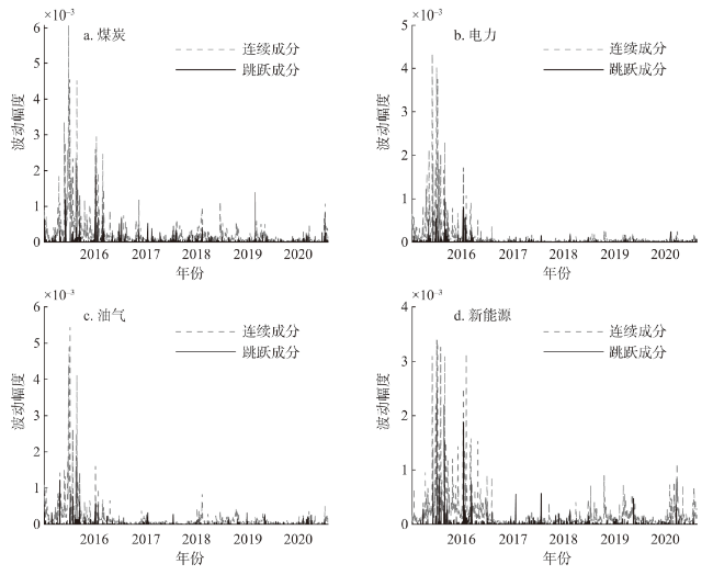 【目的】能源行业与国家安全和经济发展息息相关,其系统性风险不容忽视。本文旨在研究常态和极端情形下能源行业间系统性风险溢出方向及特点,为能源行业系统性风险管理提供新的思路与方法。【方法】本文基于波动分解视角,将能源行业的波动风险分解为连续性和跳跃性成分,并通过向量自回归模型的广义误差方差分解思想,构建系统分析下各能源子行业及各波动成分间的溢出矩阵及溢出指标,并据此从静态和动态两个角度,研究了中国能源行业系统性波动风险溢出效应。【结果】实证结果表明:①能源行业有明显的跳跃性波动,行业内极端跳跃风险的积累会导致行业间系统性风险增加。②能源行业之间的系统风险溢出具有显著的时变性,在股市动荡期风险易向行业外扩散,系统性风险水平相对较高,但在稳定期则易转向行业内传染,系统性风险水平相对较低。③能源行业波动风险易在同种风险类型中传导,交叉风险传染有限,其中,能源系统性波动风险在行业间的溢出主要通过连续对连续路径实现,而行业内主要为跳跃对跳跃路径。④煤炭行业是连续性风险的最大发出者,电力行业是跳跃性波动风险的唯一发出者,新能源行业是以跳跃性波动形式接收外部风险的最大接收者。【结论】应密切关注能源行业系统性风险,并根据其传染特点进行灵活动态监管,稳定时期需重点关注行业内同类型风险间的溢出,在波动较大时期,应重点关注风险在跨行业和跨成分间的传染,坚决守住不发生系统性风险的底线。