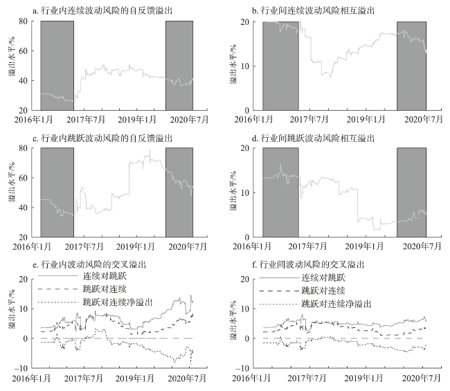 表3 系统层面下两类波动风险的相互溢出( , , , )Table 3 Cross-component spillovers at the system level |
