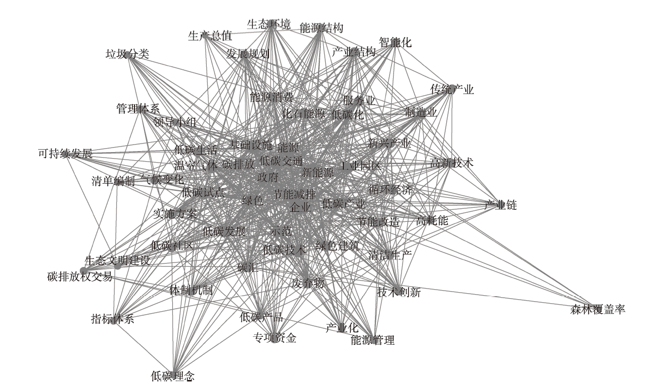 | 政策功能X7 | 节能减排X7:1、低碳技术X7:2、绿色建筑X7:3、能源转型X7:4、低碳交通X7:5、碳汇X7:6 | 董纪昌等[29]和主题词共现网络 |
