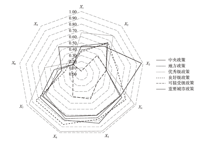 | 政策领域X4 | 经济X4:1、社会服务X4:2、政治X4:3、环境X4:4、制度X4:5、科技X4:6 | 蔡冬松等[24]和主题词共现网络 |