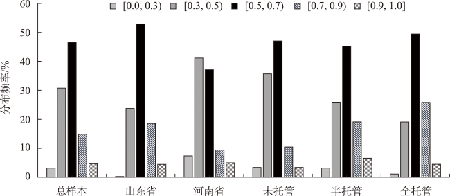 | 分托管程度 | 未托管 | 678 | 0.548 | 0.157 | 0.043 | 1.000 |