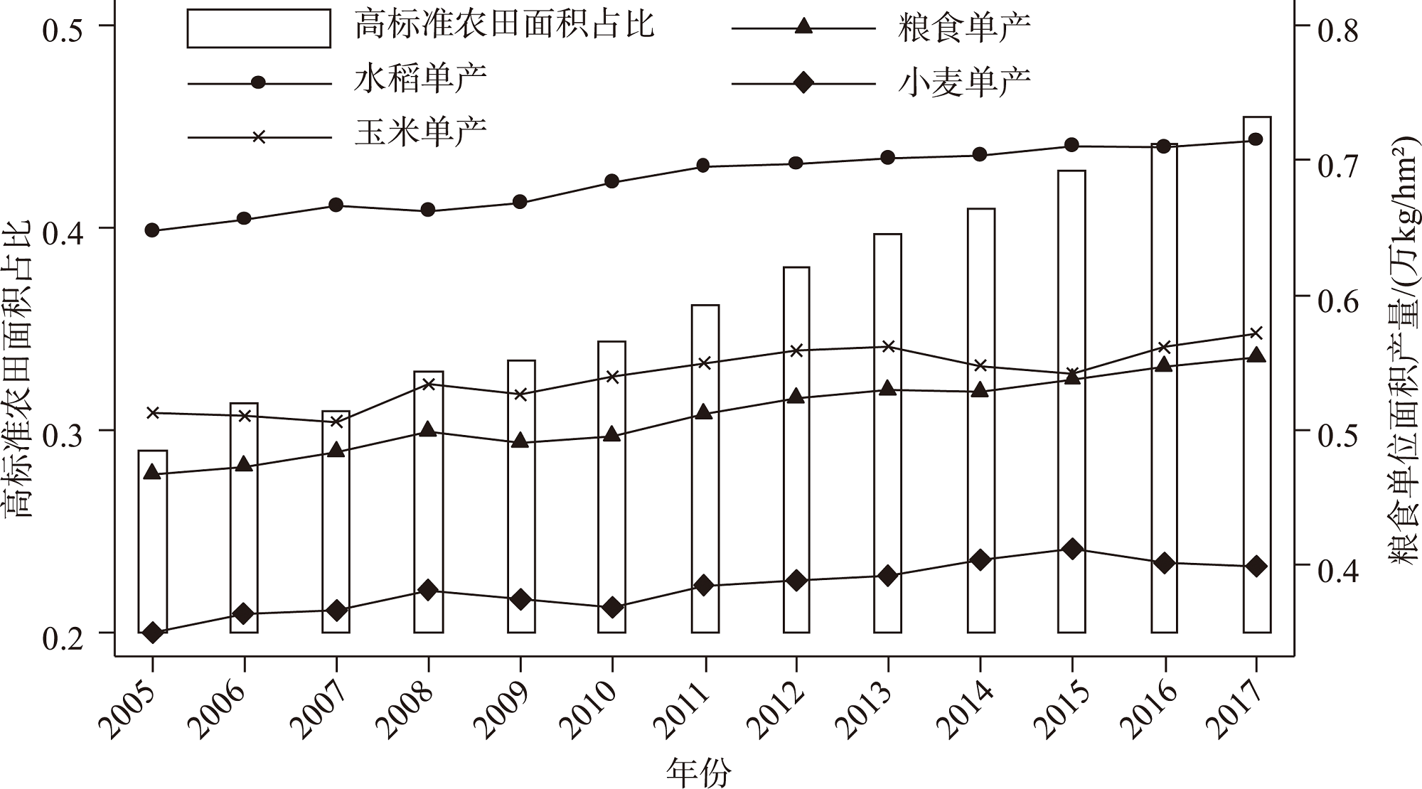 刘巧芹, 刘玉, 胡永翔. 高标准农田建设对粮食单产的贡献率测度研究进展[J]. 江苏农业科学, 2016, 44(8): 557-560.