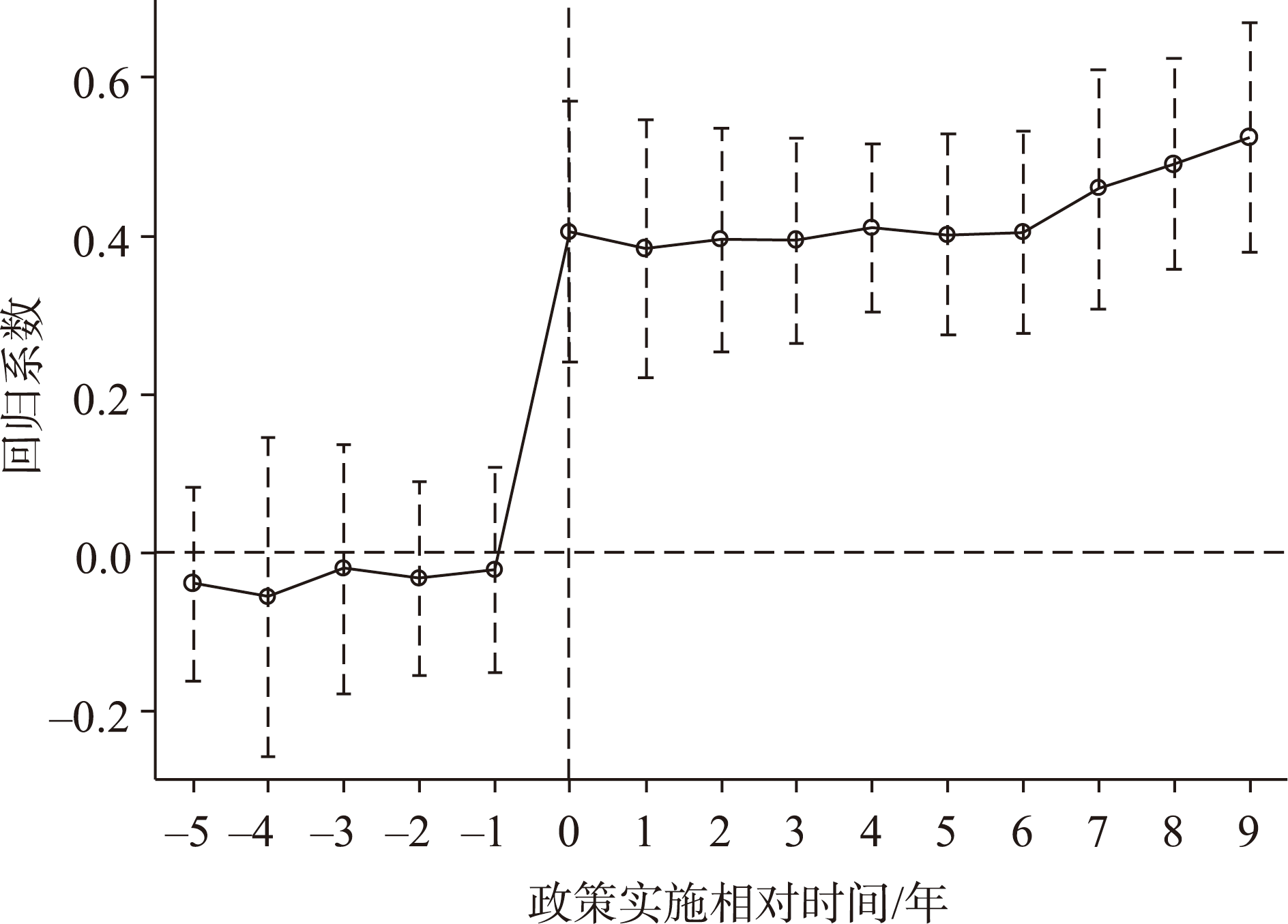 表3 高标准农田建设政策的动态效应估计Table 3 Dynamic effect estimation of high-standard farmland construction policies |