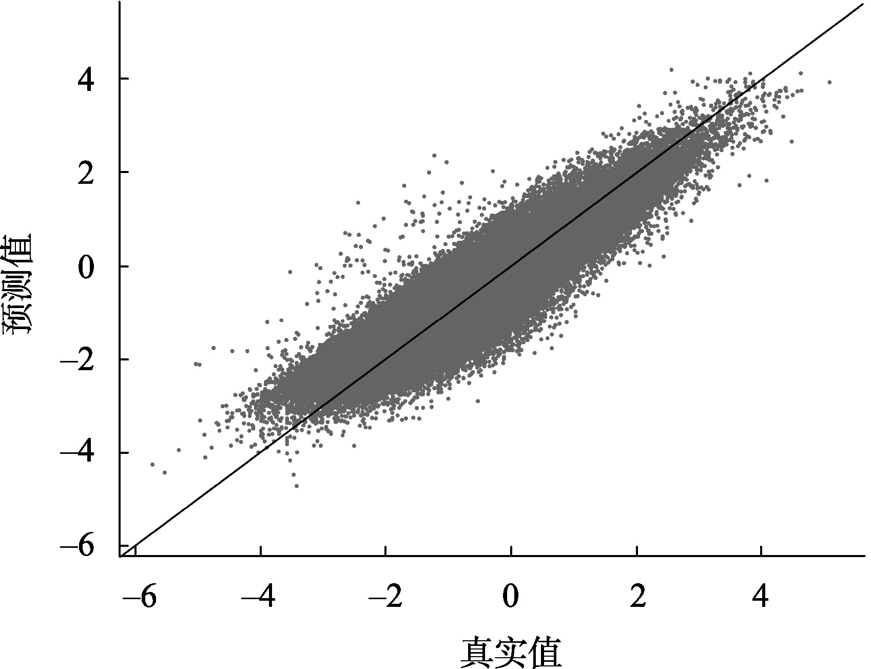 图2 累积碳排放量样本值与预测值(R2=0.821)Figure 2 Sample and predicted values of cumulative carbon emissions (R2=0.821) |
