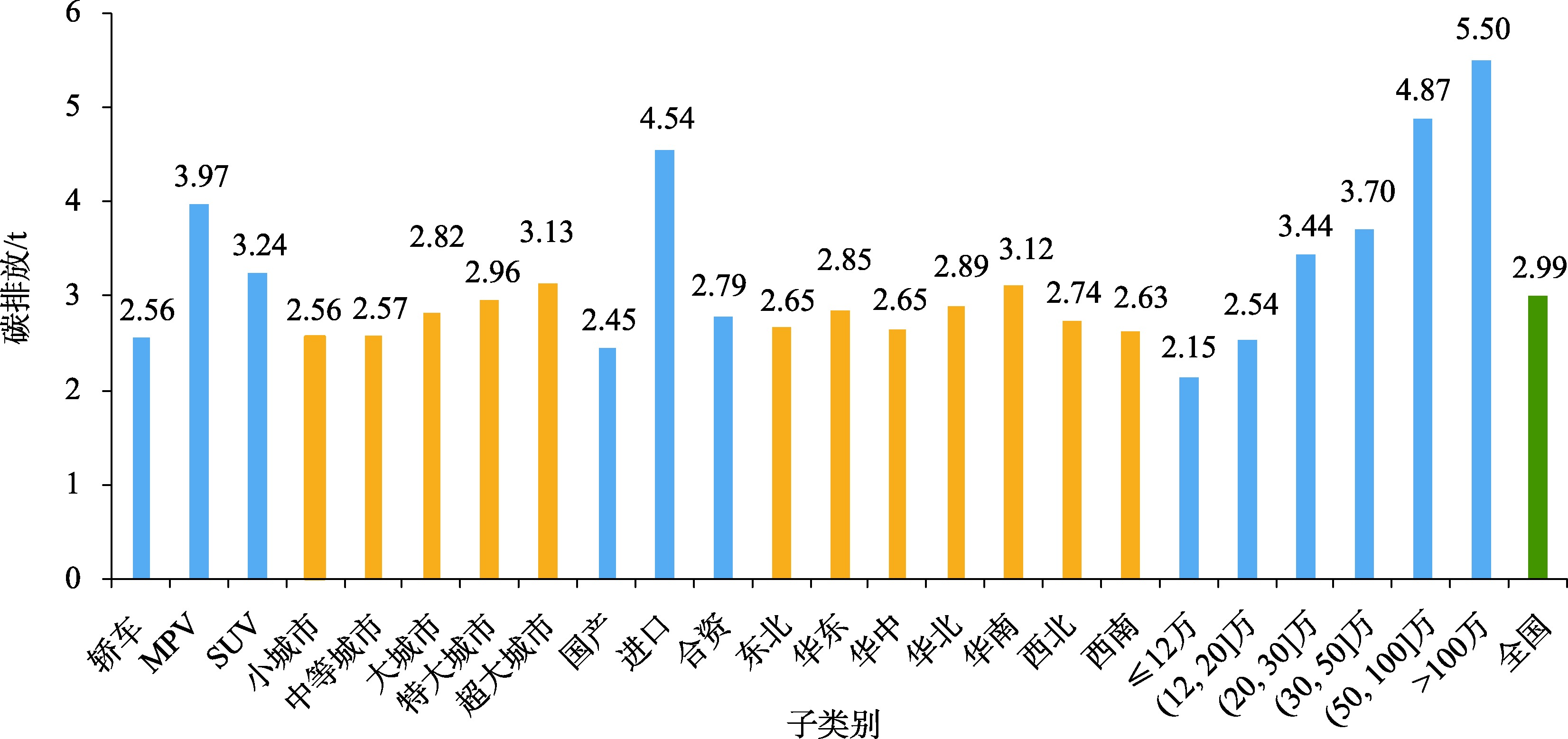 | 类别 | 子类别 | 样本量 | 样本占比/% | R2 | 车辆年均碳排放量/t | 平均行驶里程/km | 平均油耗/(L/100 km) |