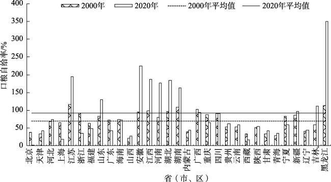 表2 2000—2020年中国口粮自给率动态演进特征Table 2 Dynamic change characteristics of ration self-sufficiency rate in China, 2000-2020 |