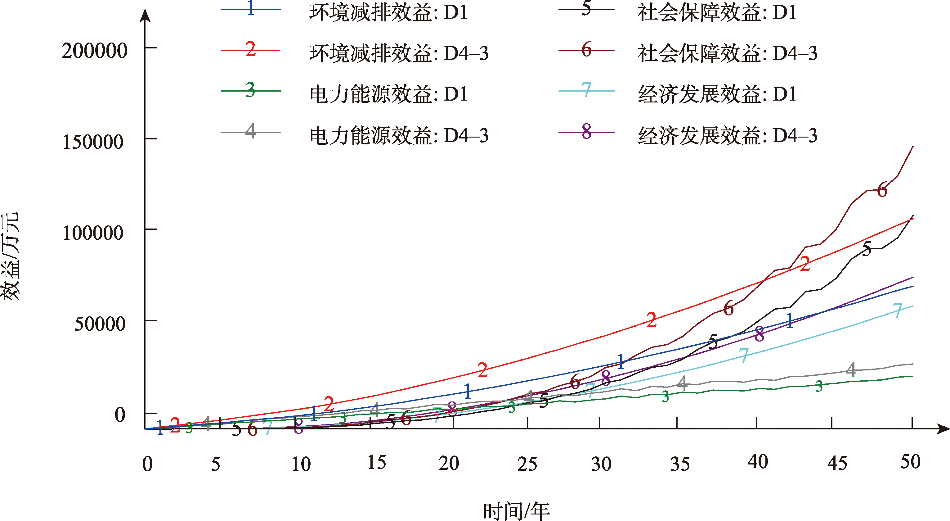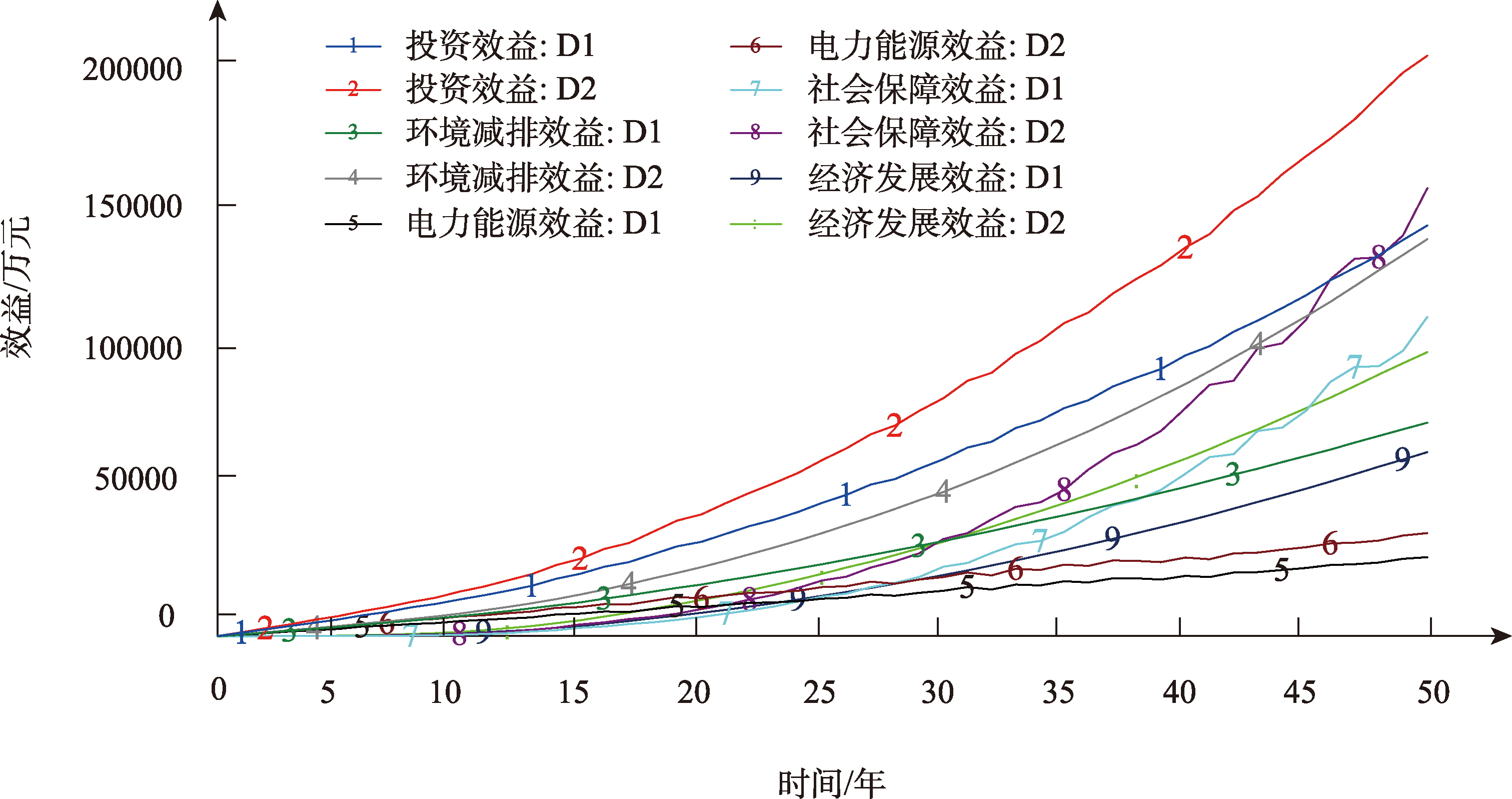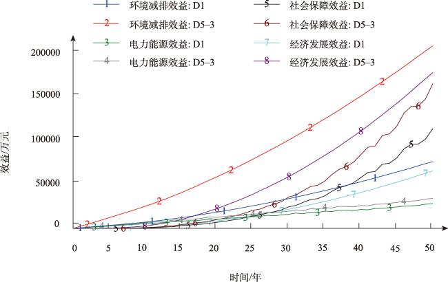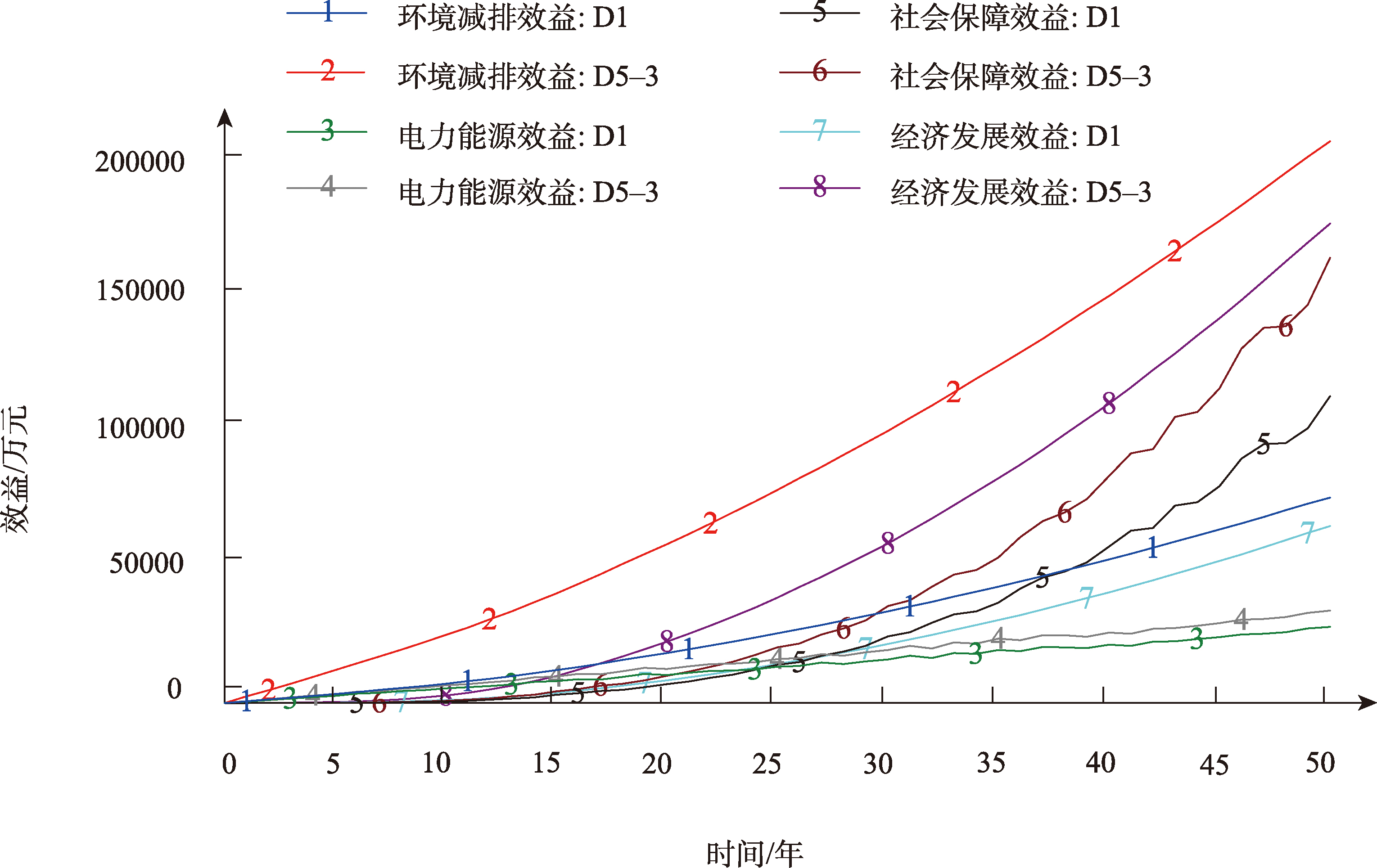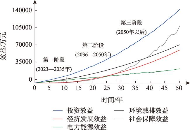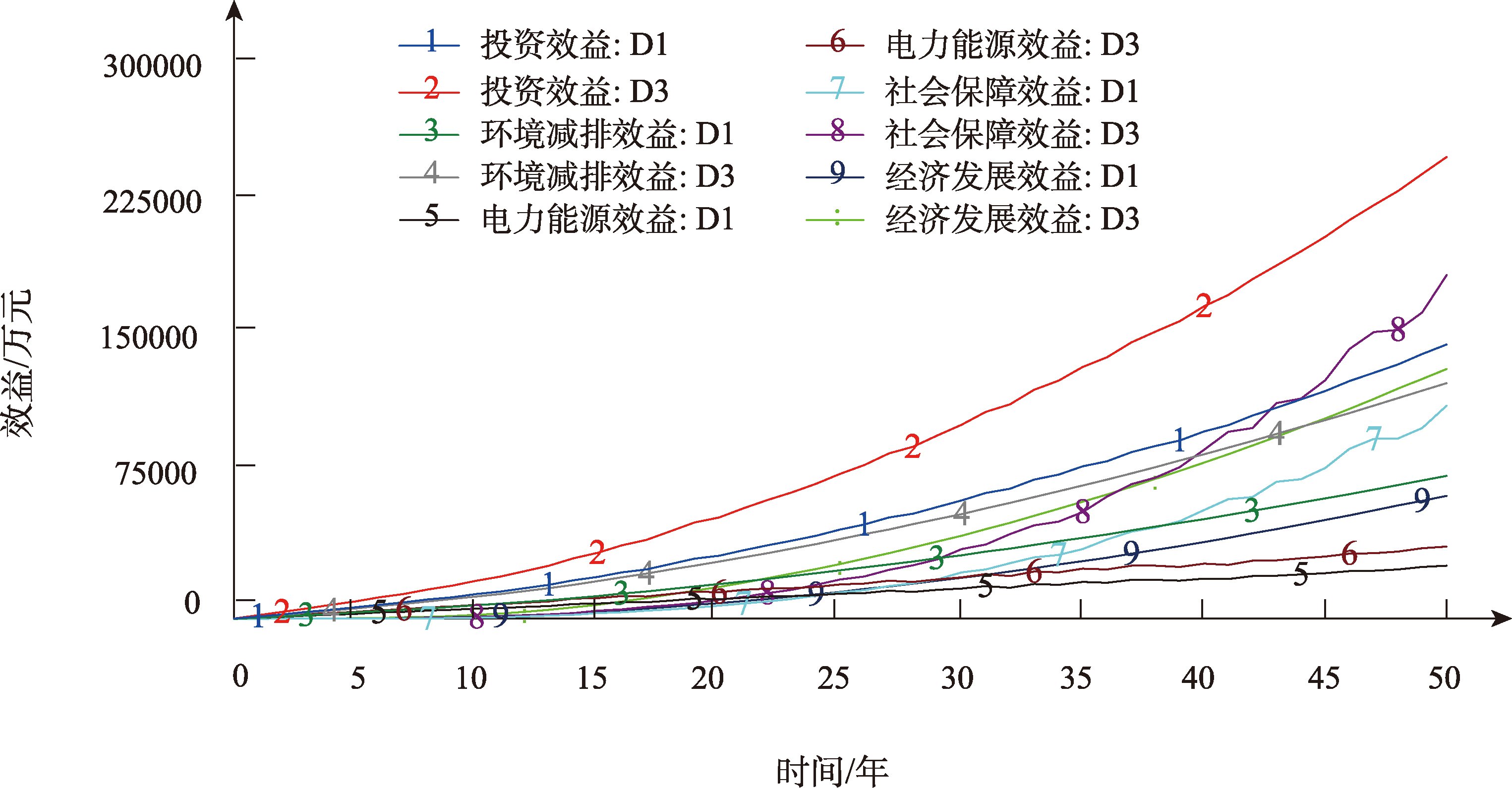 [Objective] Carbon capture, utilization, and storage (CCUS) technology is a core tool for reducing emissions and carbon output in coal-fired power plants and is considered key to achieving the carbon neutrality goals. However, in China, the economic returns on investment in CCUS are low, the overall benefits are uncertain and difficult to measure, and CCUS is still in the demonstration phase. Accurately forecasting the benefits of CCUS investment is of critical scientific significance for clarifying technological pathways, optimizing resource allocation, and promoting its commercialization. [Methods] This study took coal-fired power plants as the research subject and employed the system dynamics method to predict the comprehensive benefits of CCUS investment in Chinese coal-fired power plants from four dimensions: economic development, electric energy, environmental emission reduction, and social security. [Results] (1) The study found that after coal-fired power plants were equipped with CCUS technology, the comprehensive benefits of CCUS investment experienced a change from low-level stagnation to fluctuating increases, and then rapid growth. (2) Driven by technological progress and economies of scale, the benefits of CCUS investment have significantly increased. Technological progress has improved capture efficiency and reduced costs, while economies of scale have enhanced economic, environmental, and social benefits through increased installed capacity and improved carbon reduction efficiency, greatly improving overall investment returns.(3) Government subsidies, carbon taxes, and carbon trading prices all significantly enhance the benefits of CCUS investment. Among them, the carbon trading mechanism has the most notable impact on economic benefits and environmental reduction, while the carbon taxes,by increasing power generation costs, not only indirectly motivates enterprises to implement CCUS technology upgrades but also further improves overall investment efficiency. [Conclusion] In the process of commercial deployment and comprehensive benefit improvement of CCUS, the cost reduction brought by the iteration and scale of CCUS itself plays a core role. Compared with policy support measures such as subsidies, the carbon market trading mechanism plays a greater incentive role in the development of CCUS. Based on this, China should strengthen CCUS technology research, promote the inclusion of CCUS projects in the carbon trading mechanism as soon as possible, and formulate a moderate subsidy incentive policy for CCUS to increase the benefits of CCUS investment and help achieve the carbon neutrality goals.