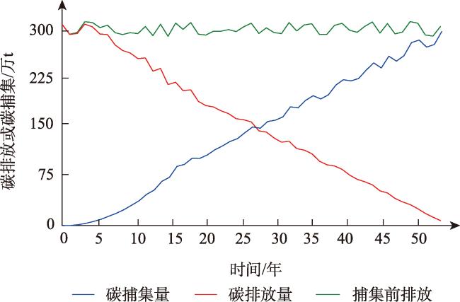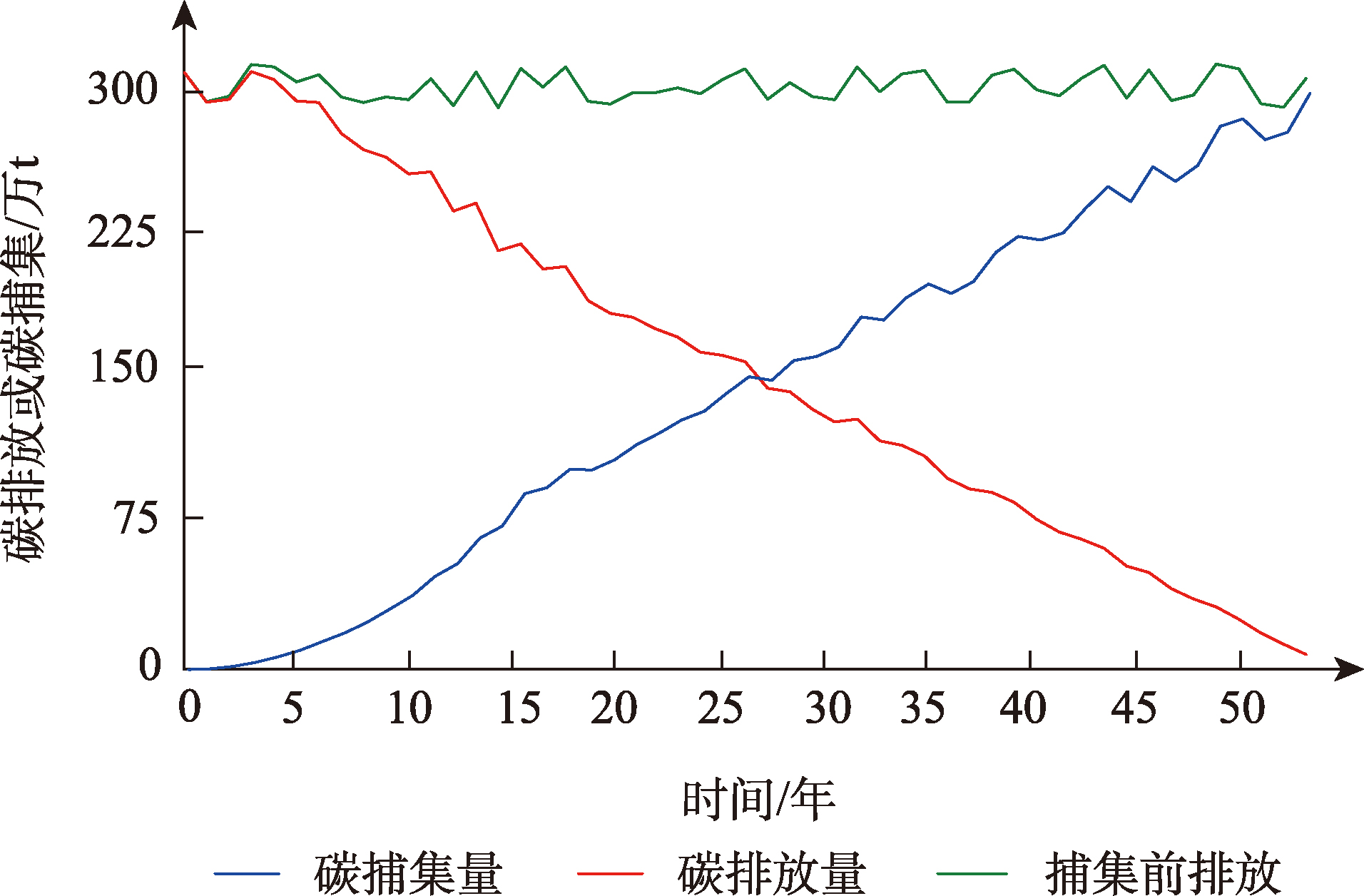 图4 燃煤电厂CCUS碳排放-捕集流图Figure 4 Carbon emission-capture flow diagram of carbon capture, utilization, and storage (CCUS) in coal-fired power plants |
