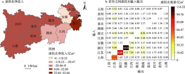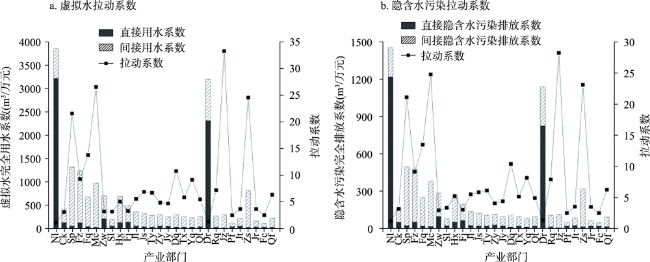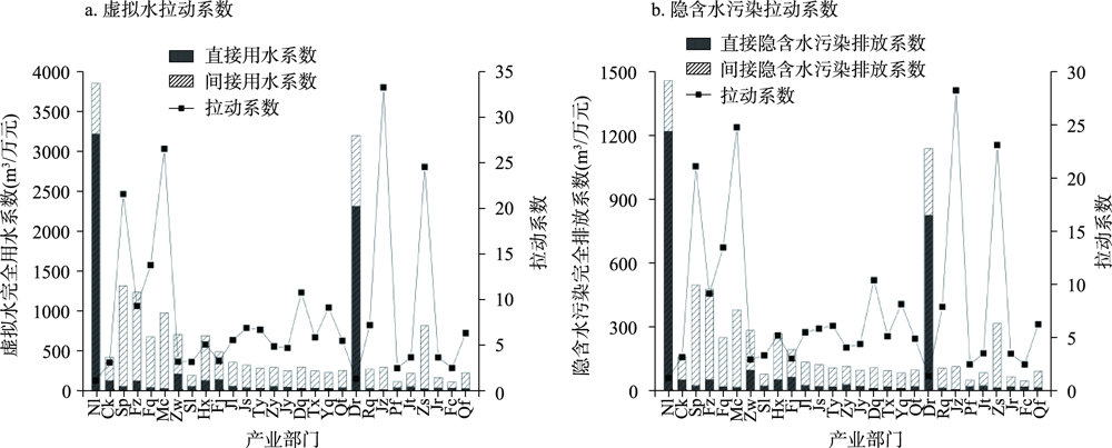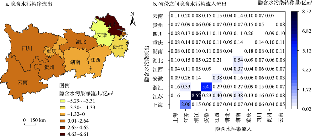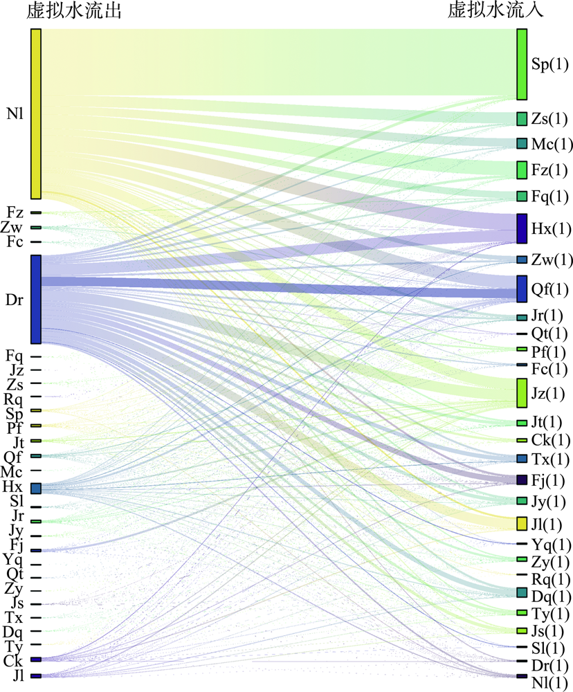【目的】分析长江经济带贸易隐含水污染转移格局及各产业部门的隐含水污染排放拉动系数,有利于更深层次掌握区域经济社会发展与水资源保护之间的关系,为区域人水关系协同优化和可持续发展格局构建提供参考依据。【方法】本文依据多区域投入产出原理,结合2017年长江经济带多区域投入产出表与其各省(市)部门的用水数据,建立多区域投入产出模型,计算分析各省(市)间虚拟水流动格局、隐含水污染转移格局和产业部门间隐含水污染排放的拉动情况。【结果】①在虚拟水流动中,下游地区主要消费虚拟水,中游地区主要供应虚拟水,上游地区与其他地区虚拟水贸易联系较弱;上海是虚拟水的主要消费者,安徽是虚拟水的主要生产者;其他部门的虚拟水大部分来自农业和电力热力的生产供应业。②在隐含水污染转移中,下游地区转移的隐含水污染最多,隐含水污染净流出量为5.92亿m3,中游地区是隐含水污染排放的主要承担者,隐含水污染净流入量为6.43亿m3;江苏转移的隐含水污染最多,浙江承担了江苏83.37%的隐含水污染;农业部门承担的隐含水污染最多。③农业部门隐含水污染的直接排放系数最大,为1222.16 m3/万元,建筑业拉动系数最高,为28.31,若增加产出将增大其他部门的隐含水污染排放。【结论】中下游省(市)在虚拟水流动中表现活跃;隐含水污染的转移主要集中在中下游省(市)间或贸易联系密切的部门间;不同部门直接或间接用水以及隐含水污染排放强度存在较大差异。