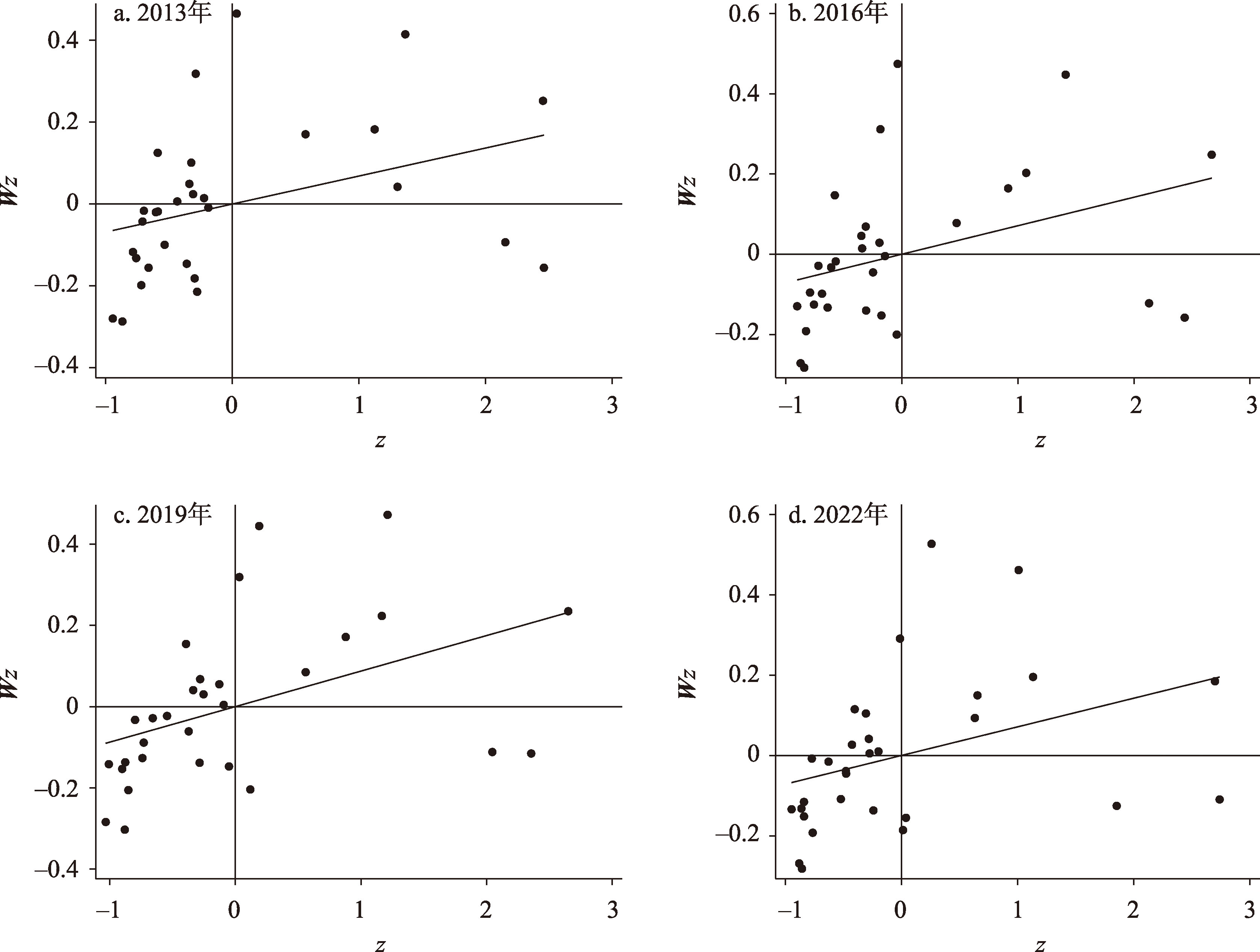 | 2013 | 0.068*** | 2.913 | 0.002 | 0.324*** | 2.846 | 0.002 | |