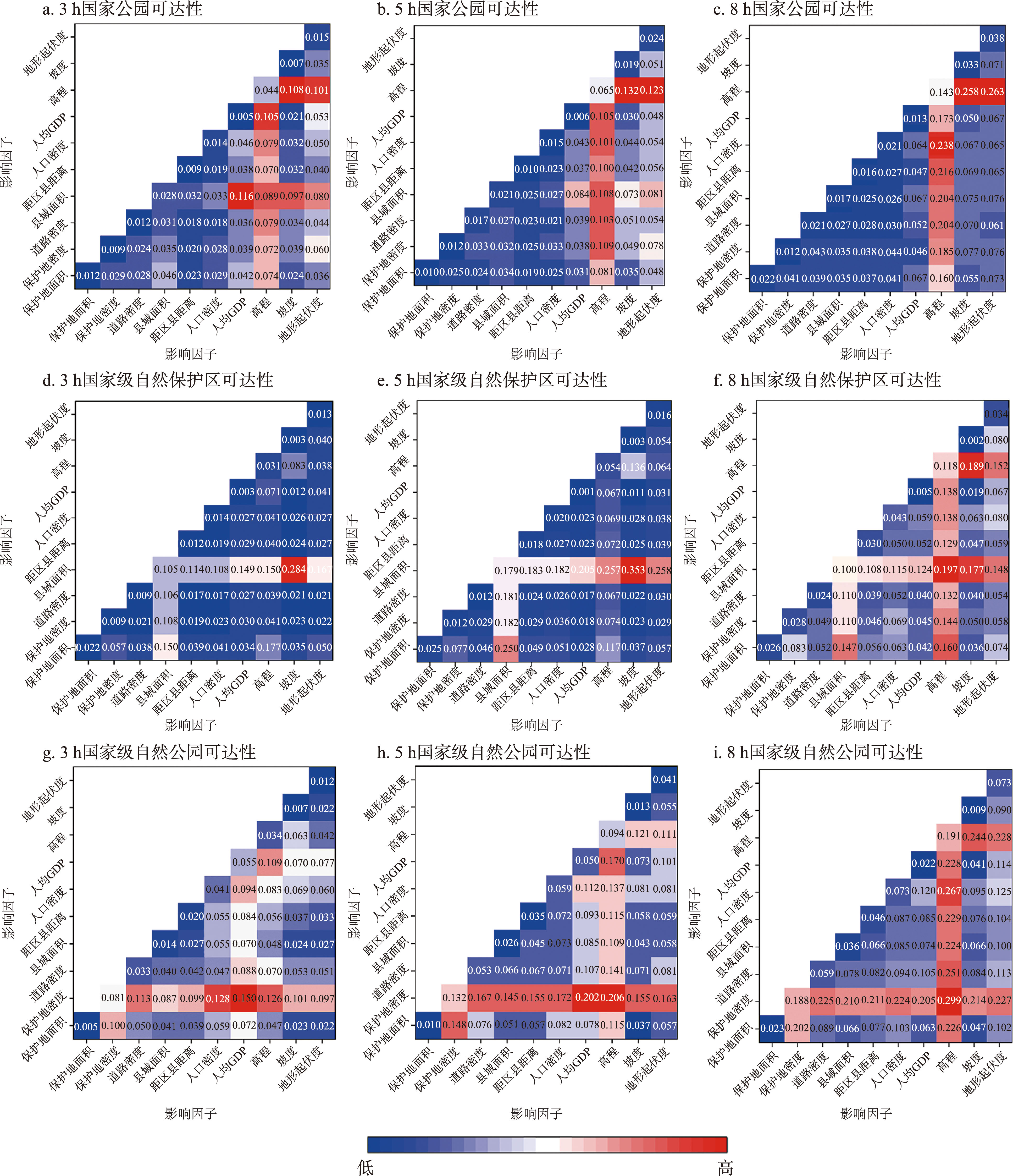 表1 3类国家级自然保护地可达性影响因素的单因子探测结果Table 1 Single-factor detection results of influencing factors on accessibility to three types of national-level protected areas |