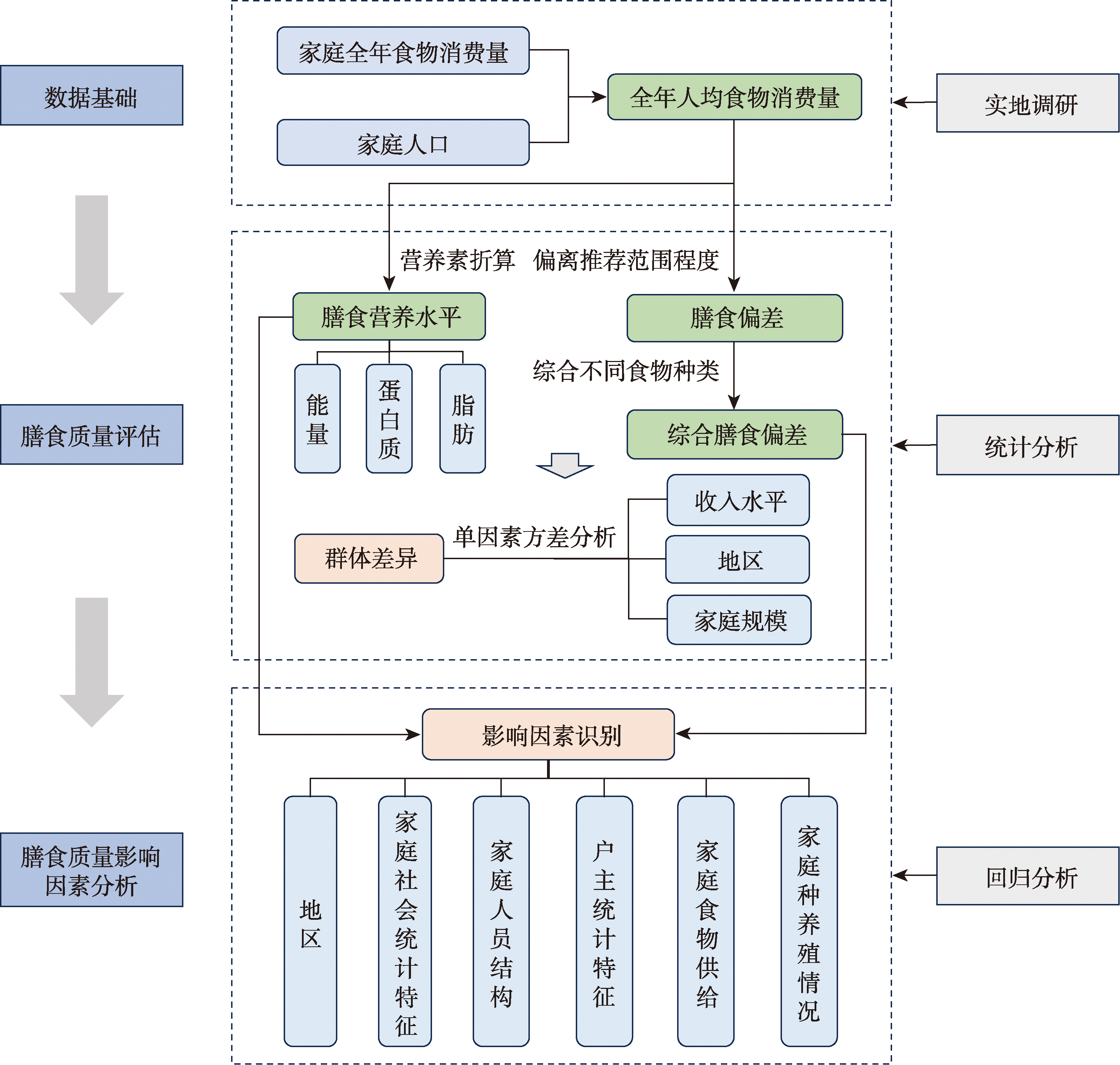 膳食质量影响因素识别回归模型变量及其定义