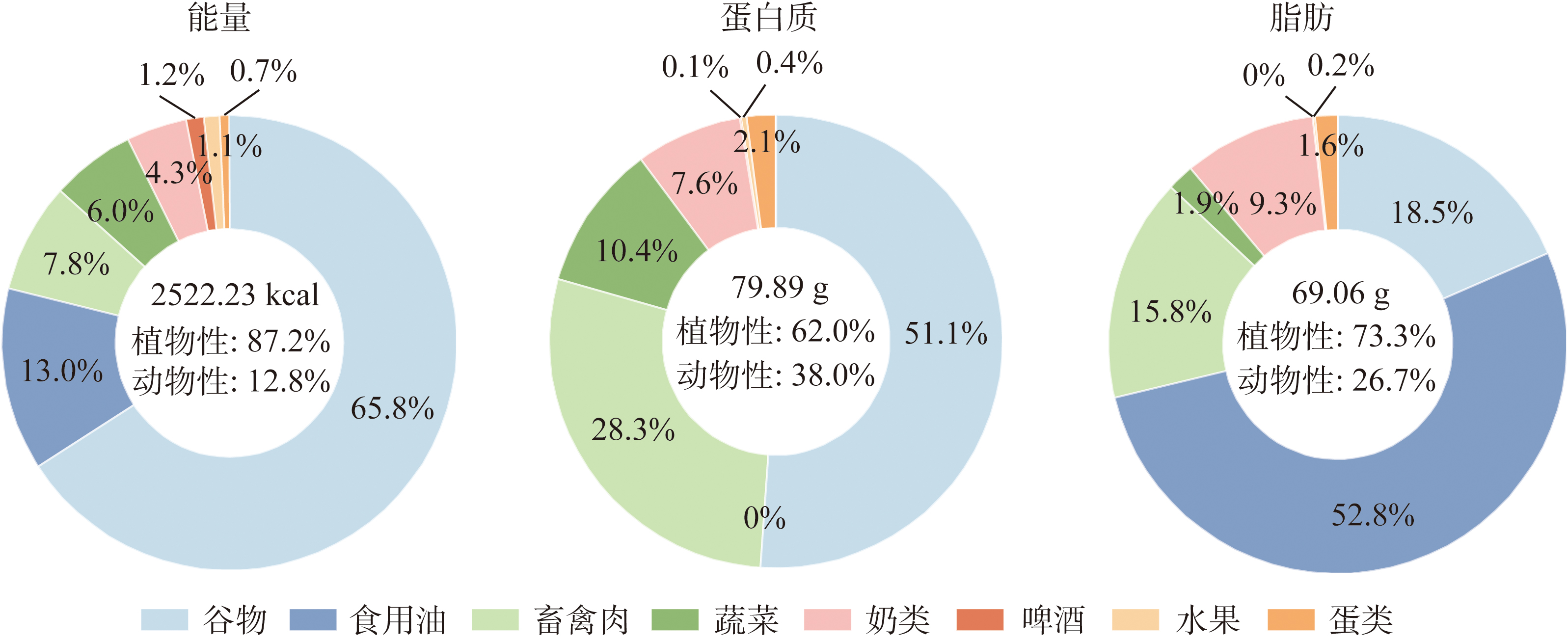 人均每日食物营养素总量与各组食物营养素占比