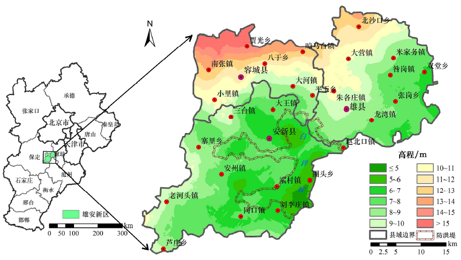 Figure 1 Location and DEM of Xiongan New Area图1 雄安新区位置、范围与高程 |