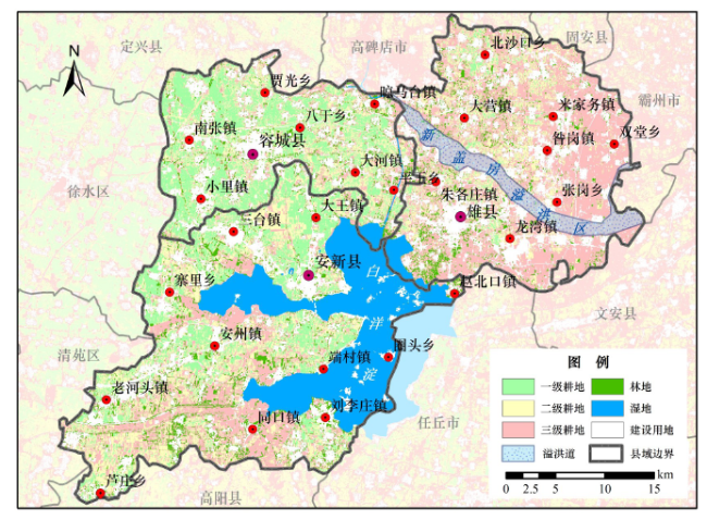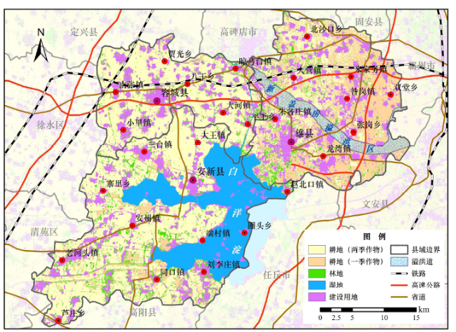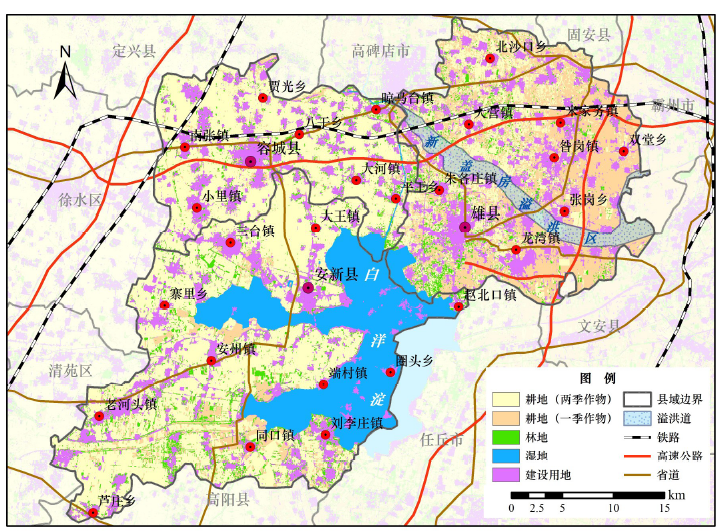 Figure 2 Land use map of Xiongan New Area in 2017图2 2017年雄安新区土地利用现状 |