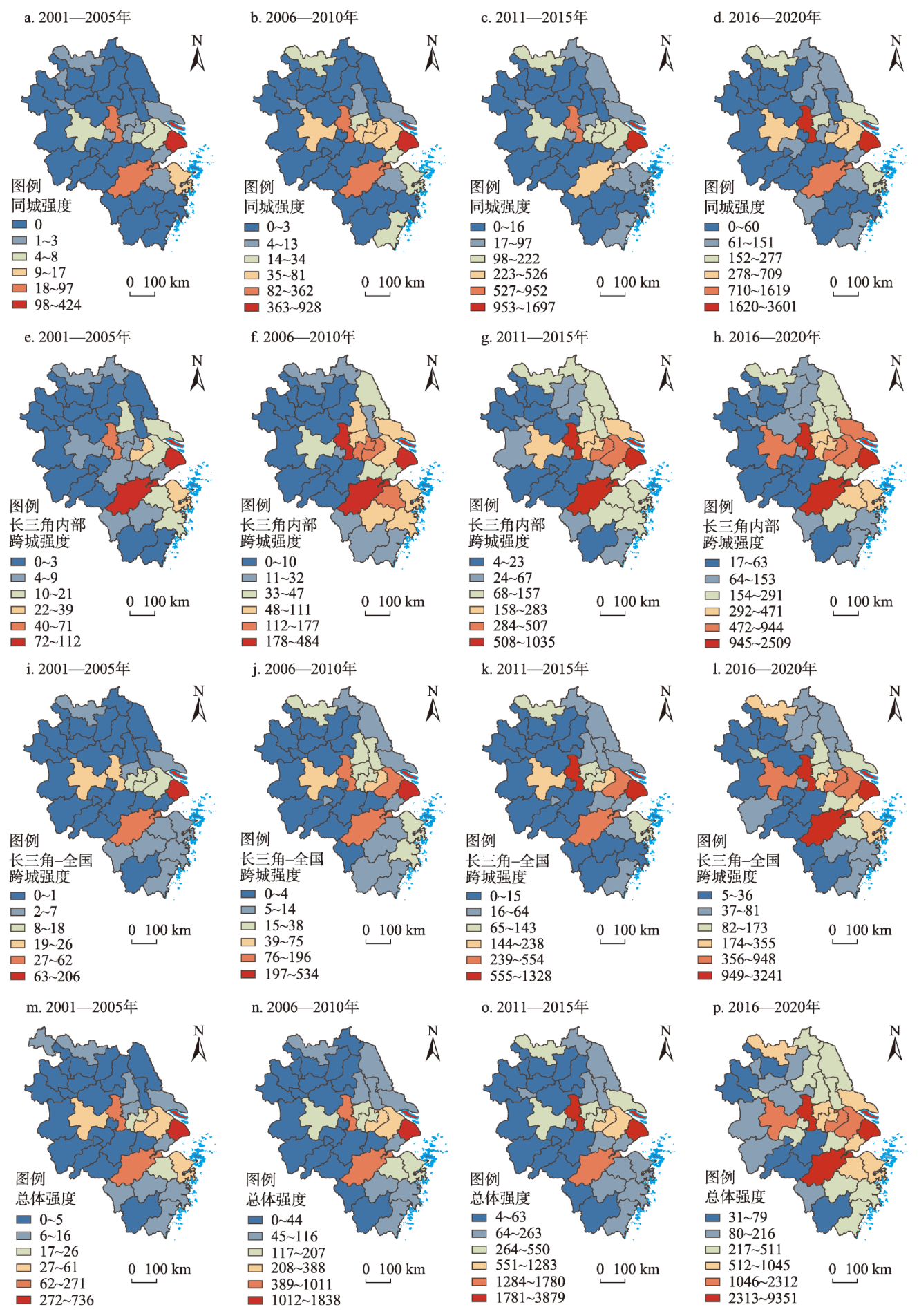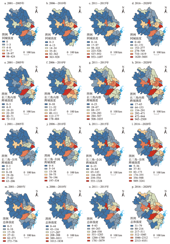 | 尺度 | 同城强度占比/% | 高(49.3) | 较高(41.5) | 低(37.4) | 低(38.8) |