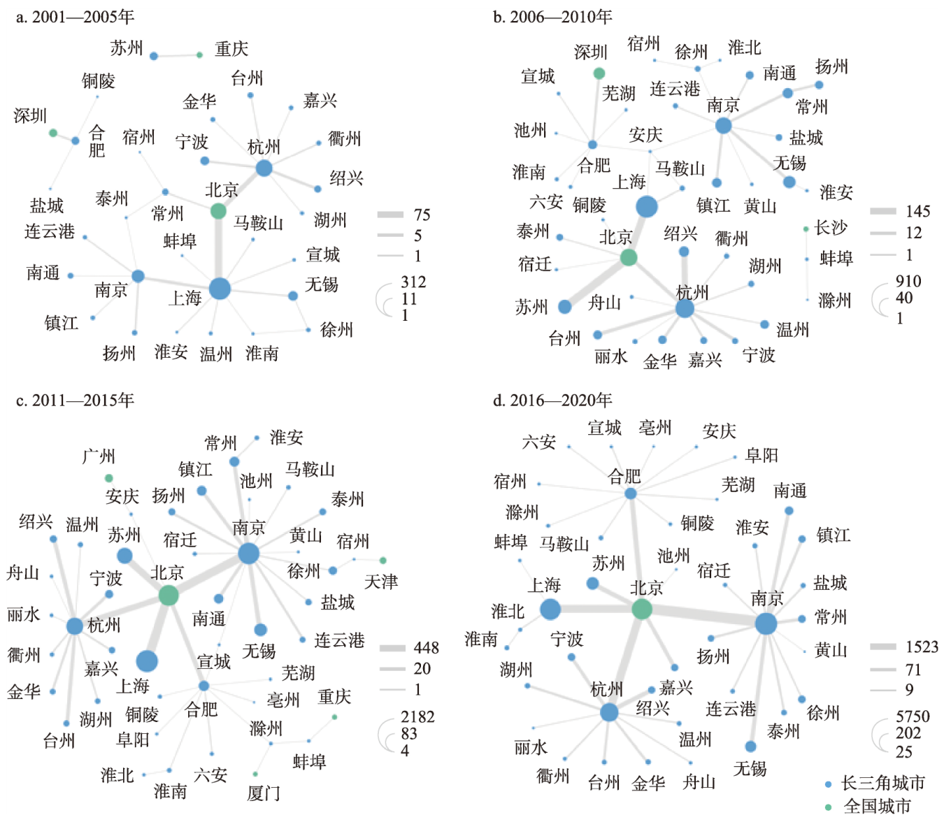 表2 2001—2020年长三角城市产学协同创新的发展模式Table 2 Development models of university-industry collaborative innovation of cities in the Yangtze River Delta, 2001-2020 |