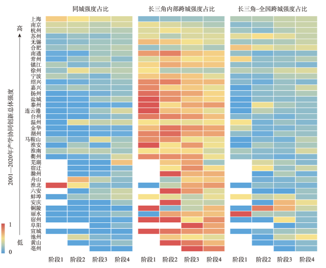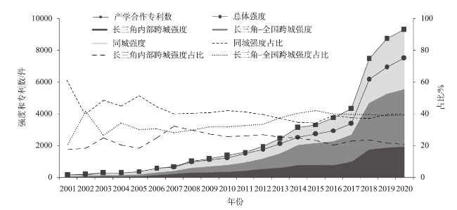 表1 2001—2020年长三角产学协同创新发展的阶段性特征Table 1 Characteristics of the four stages of university-industry collaborative innovation in the Yangtze River Delta, 2001-2020 |