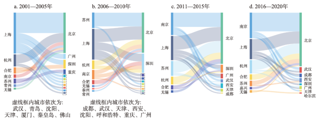 表3 2001—2020年长三角城市产学协同创新的层级体系Table 3 Hierarchical system of university-industry collaborative innovation of cities in the Yangtze River Delta, 2001-2020 |