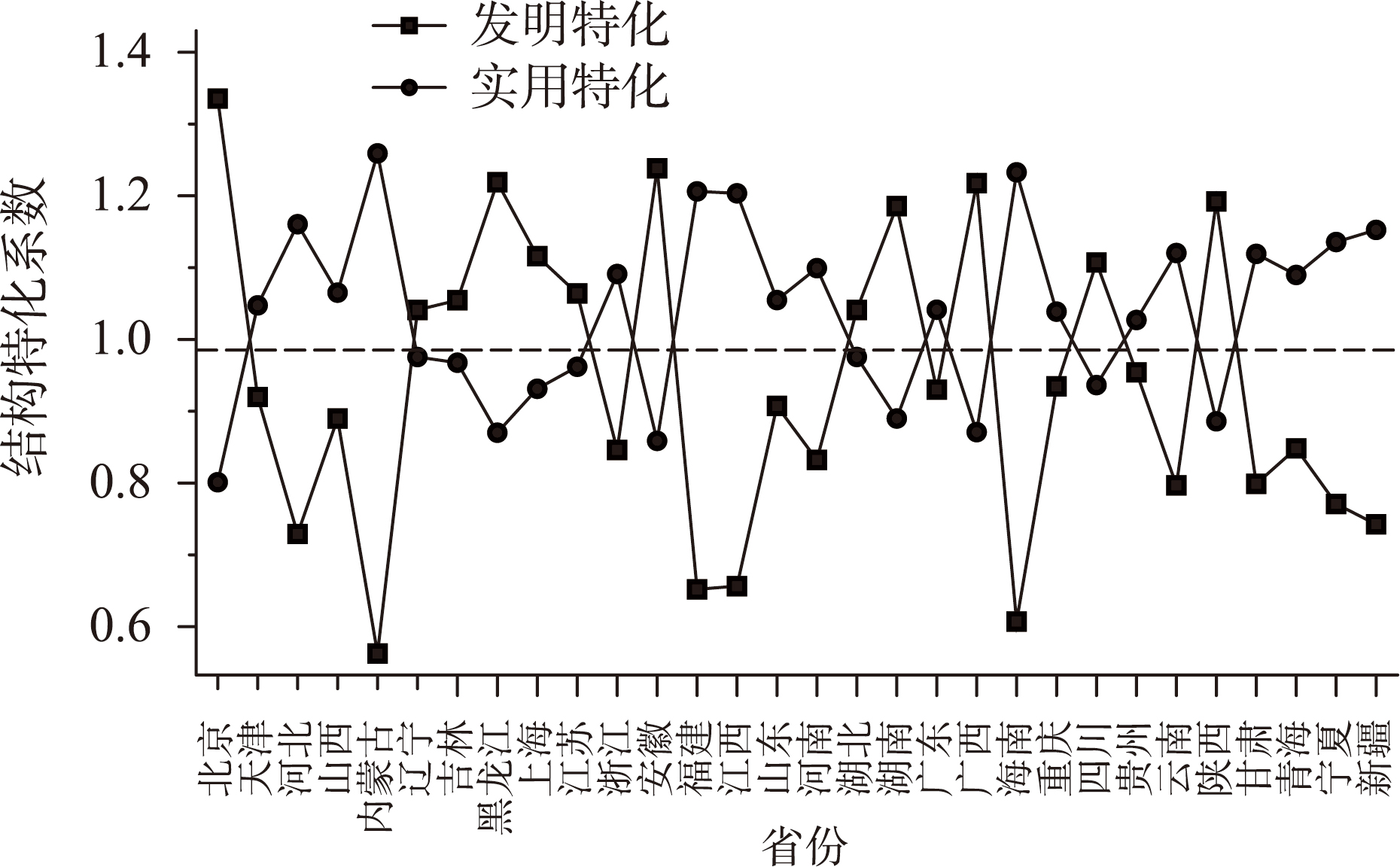 表2 依据结构特化系数的地区分类结果Table 2 Results of regional classification based on structural specialization coefficient |