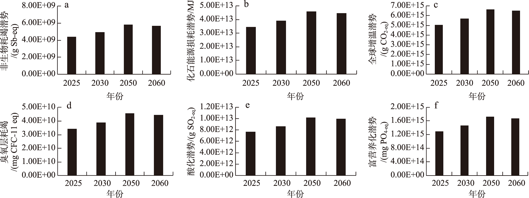 | 化石能源损耗潜势 | MJ | 2.54E+13 | 2.63E+13 | 2.82E+13 | 3.02E+13 | 3.10E+13 | 3.16E+13 |