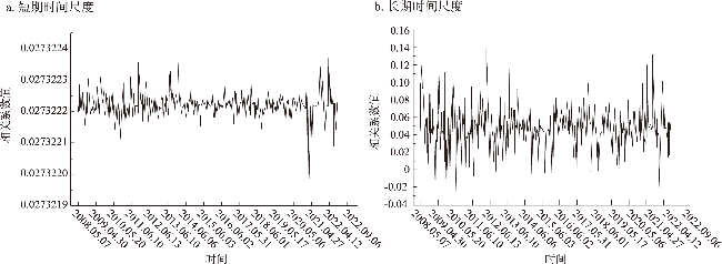 短期时间尺度下的铜-钴市场动态相关系数 | DCC-cocuh | DCC-GARCH得到的短期时间尺度下铜-钴市场的动态关联系数 | 王胜等[41] |