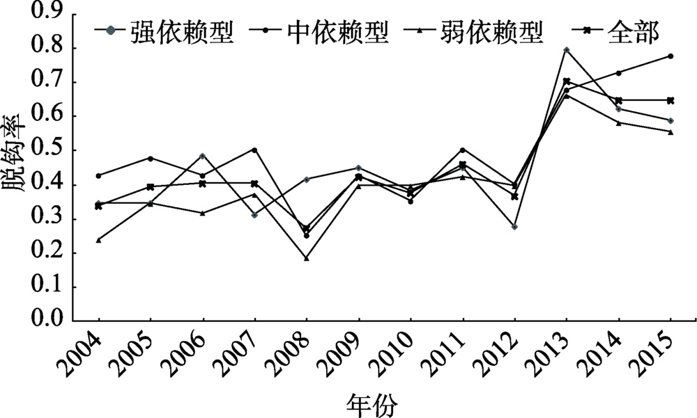 | 图3 2003—2015年资源型城市资源脱钩率趋势图 |