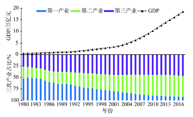 图2. 1980—2017年黄河流域经济增长和经济结构变化[ |
