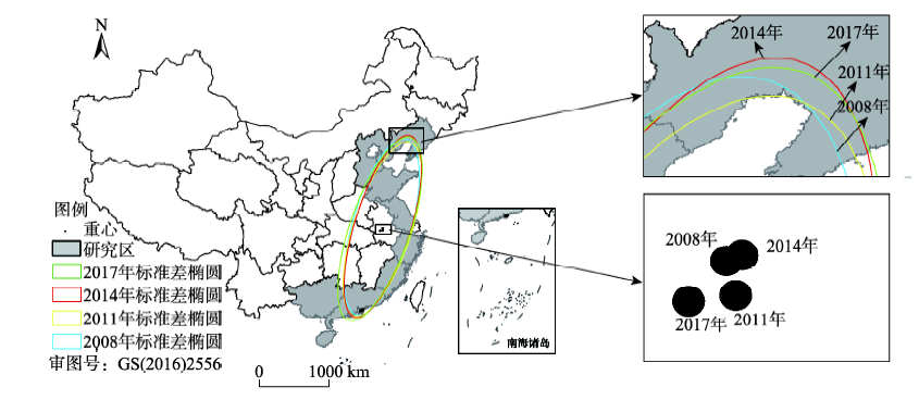 | 图5 2008—2017年中国养殖海域利用效率空间格局演进图 |