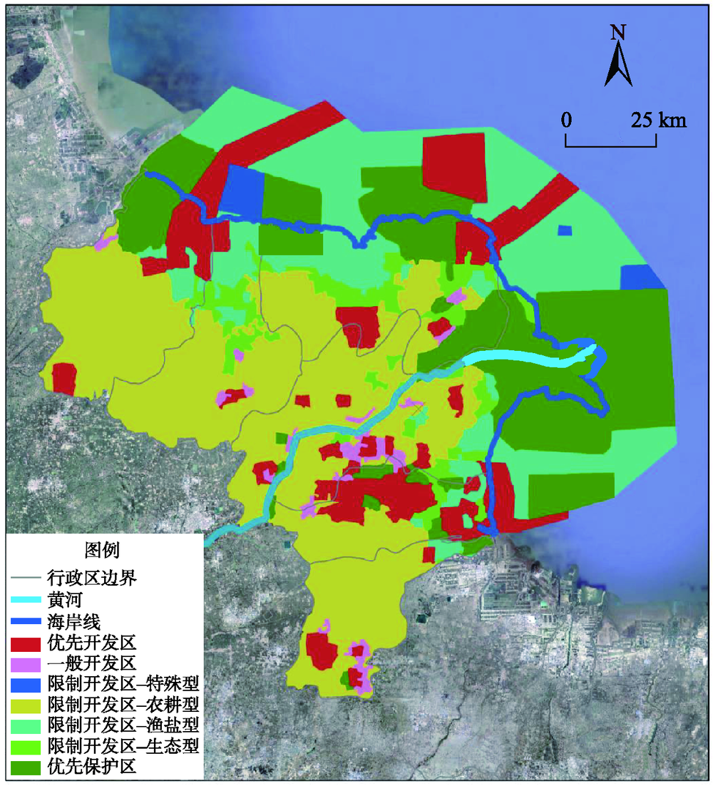 Figure 2 Division of land and sea integrated functional zones in the Yellow River Delta region |