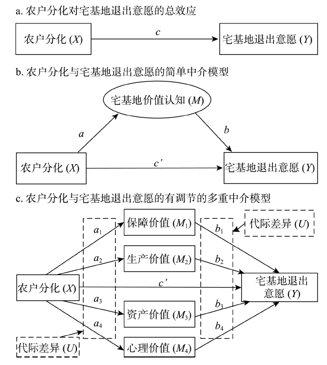 Effect of farmer differentiation and generational differences on their willingness to exit rural residential land: Analysis of intermediary effect based on the cognition of the homestead value |