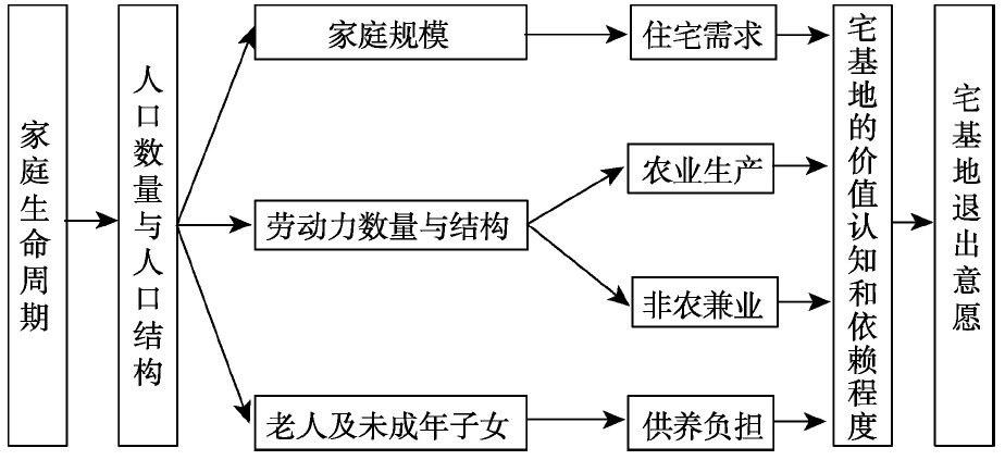 Figure 1 Theoretical framework of family life cycle influencing farming households’ willingness to exit rural residential land |